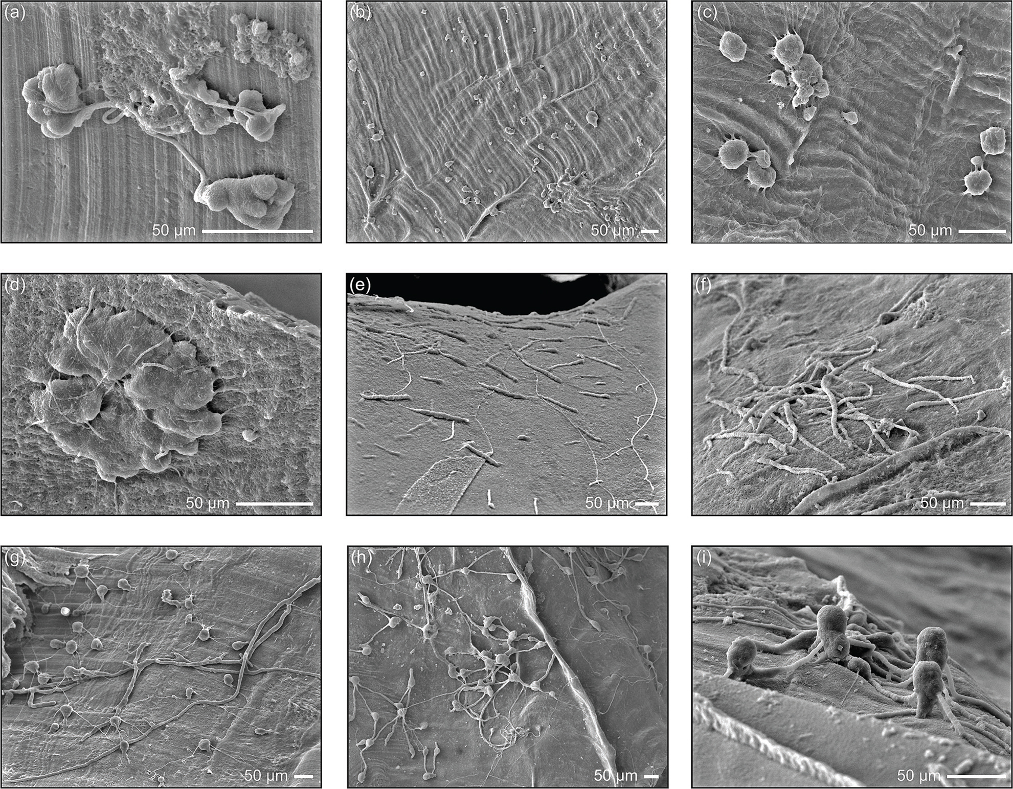 Immediately after the recovery, balanids were soaked in freshwater to remove the salt and then dried at 50 °C. Prior to the vacuum cast-embedding technique (Wisshak 2006, 2012), organic material was removed with sodium hypochlorite (customary cleaning agent); afterwards, the specimens were rinsed with deionized water and dried at 30 °C for 12 hrs. To enhance the impregnation with R&G “water clear” epoxy resin, the balanids were placed in a CitoVac (Struers) vacuum chamber. Once the resin cured, the embedded samples were cut with a rock saw and treated with ca. 5% hydrochloric acid to remove the carbonate. One hundred seventeen casts were glued onto stubs and sputter-coated with gold (Cressington sputter coater 108) for SEM investigation using a Tescan VEGA3 xmu scanning electron microscope, using the secondary electron detector at 20 kV.