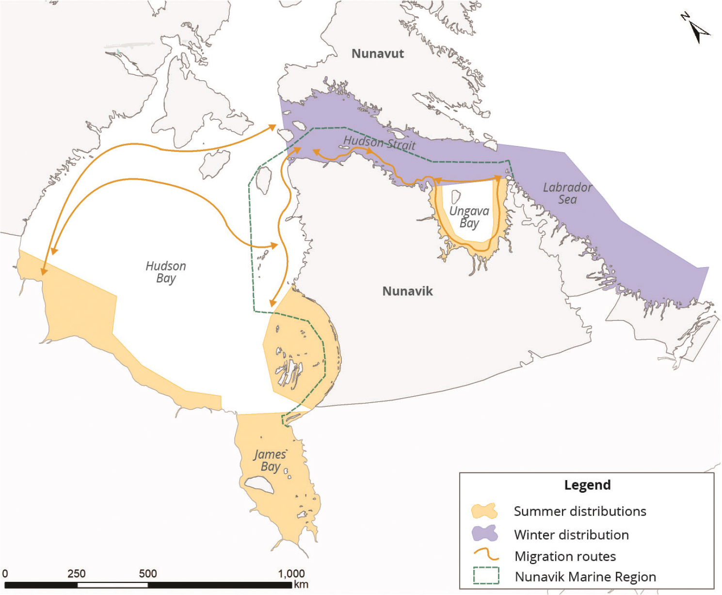 Nunavik 300 EHB (65) James Bay (10) WHB (250) Ungava Bay (few if any)